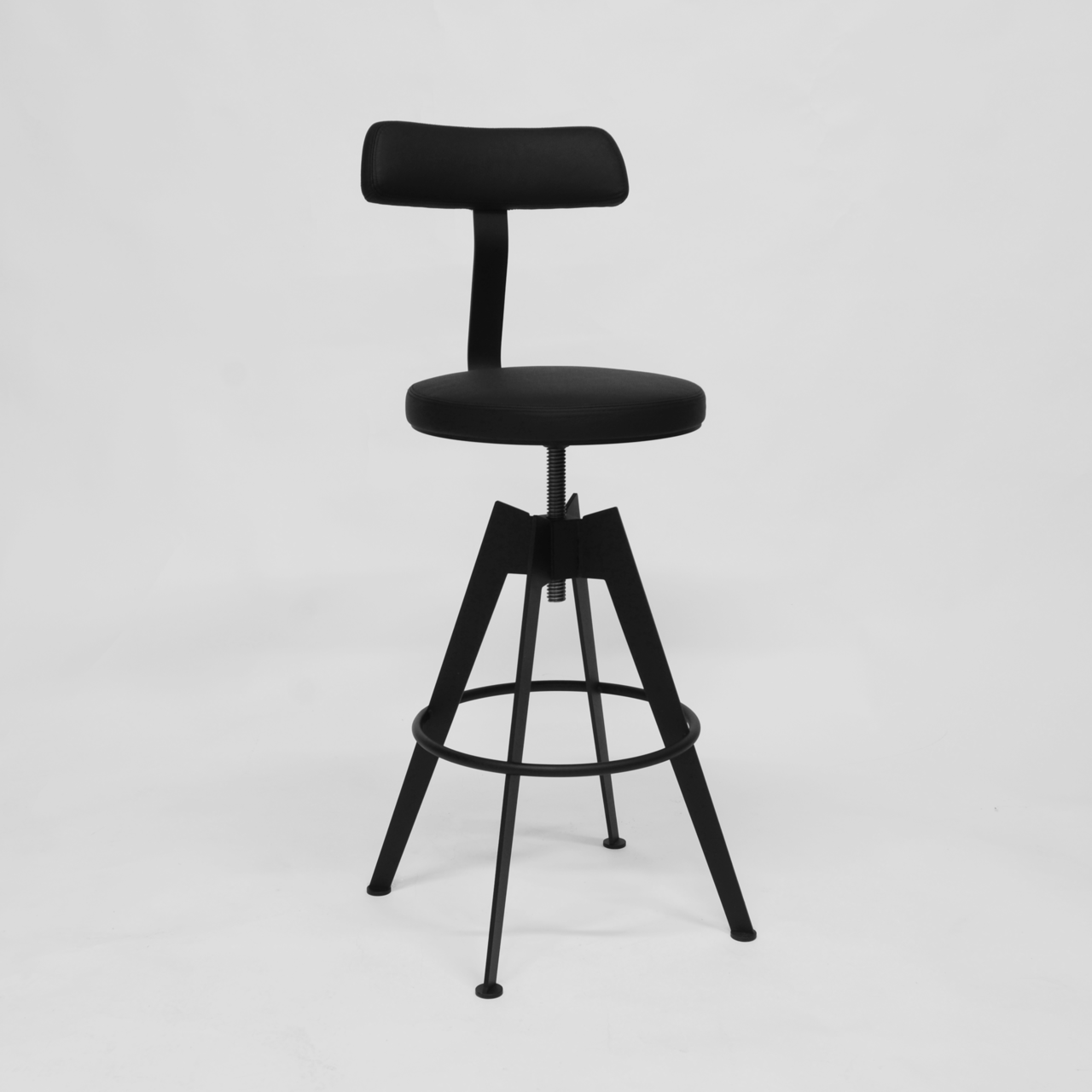 The seating height of Christo is easily adjustable, and is between 64 to 75 cm from the floor level. The seat is also freely rotating. The structure is made of steel, and the seat and the backrest are leather-upholstered.